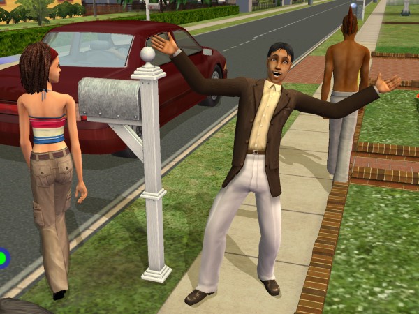 Pauline knows all about New Maximiliania's meet & greet policy: I want as many of the Maxis-made Sims know each other as possible, and so they all greet every inhabitant of the neighbourhood whenever possible.