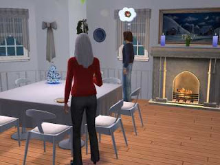 It is early Monday morning, and Cassandra and Cyd have put up some Christmas decoration and lit the fire before sitting down for breakfast.