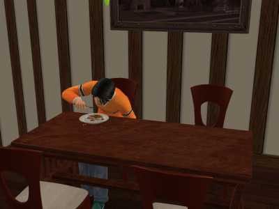 He has his meals alone... and shows a surprising lack of table manners ;-)
